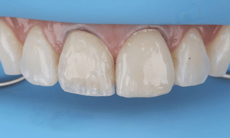 - Enamel Etching: The teeth are isolated, and Ultra-Etch™ 35% phosphoric acid etchant is applied for 15 seconds on the cut enamel. This step prepares the enamel for bonding by increasing surface area for better adhesion.