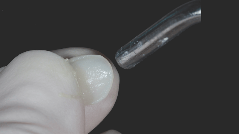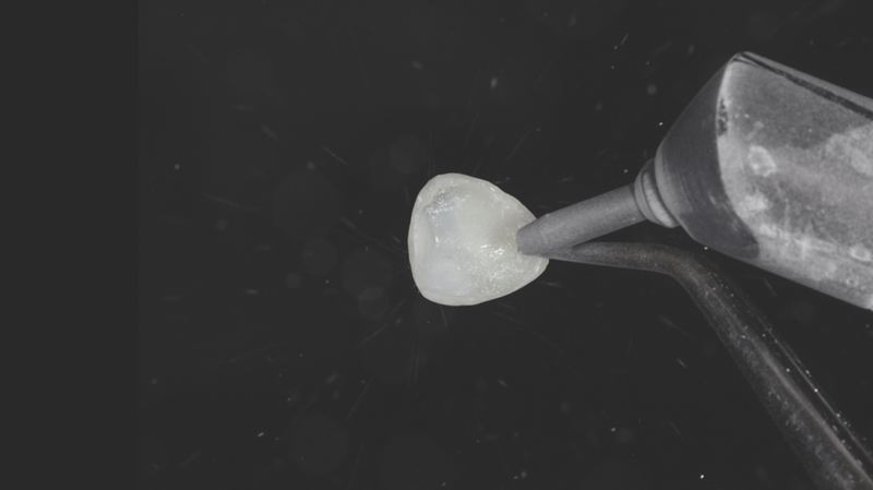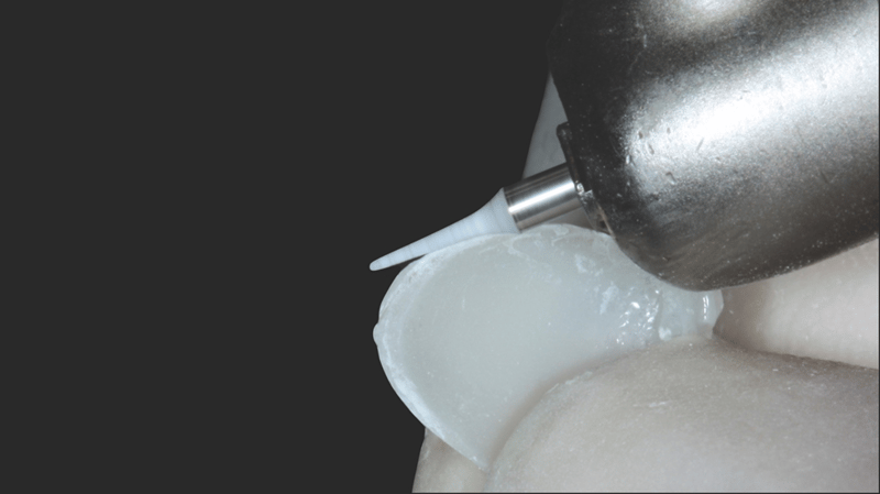 8. Internal Surface Preparation: Air abrasion was performed on the internal surface of the veneer. Alternatively, Ultra-Etch™ 35% phosphoric acid can be used for this step.