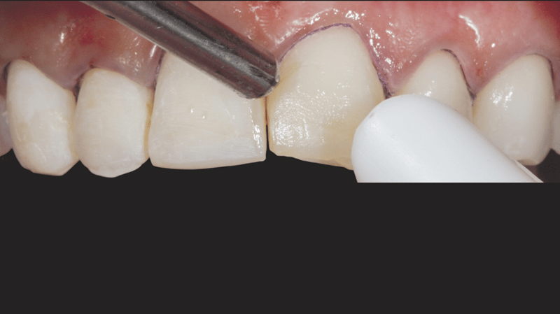 6. Margin Contouring: A fine mosquito needle diamond bur was used to contour the margins, achieving the desired shape.