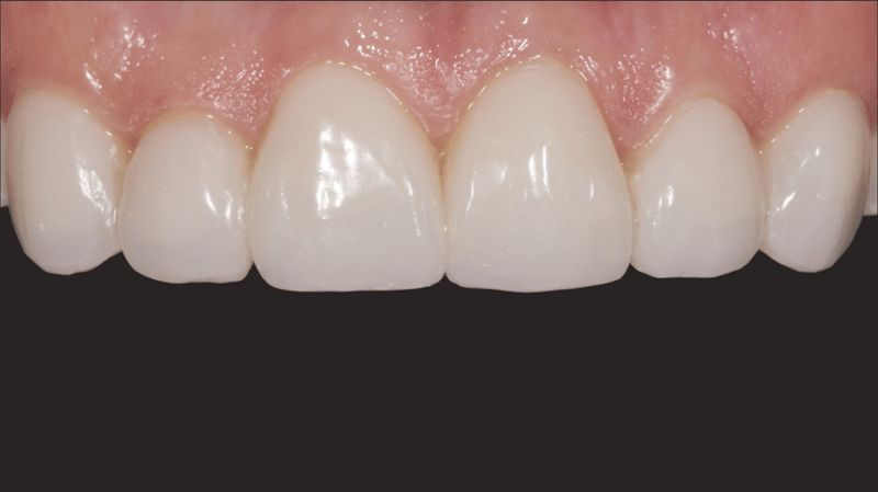 15. Cementation Results: The final cementation resulted in a stable and esthetically pleasing veneer placement.