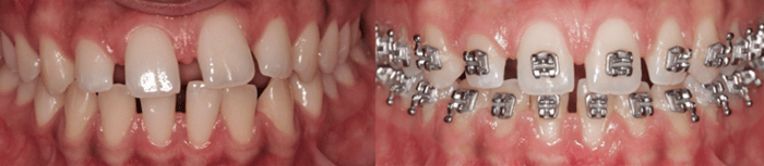 Image 1: Compound image of the initial situation and orthodontic treatment.